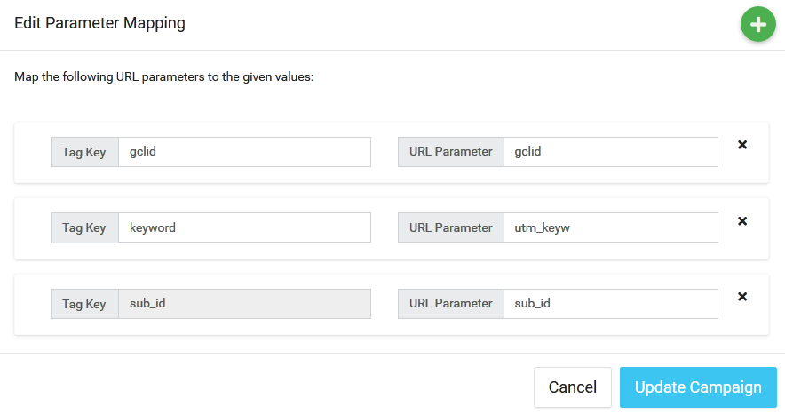 Head into your Campaign overview page -> Retreaver JS Settings -> Parameter Mappers to edit your campaign parameter mapping settings.