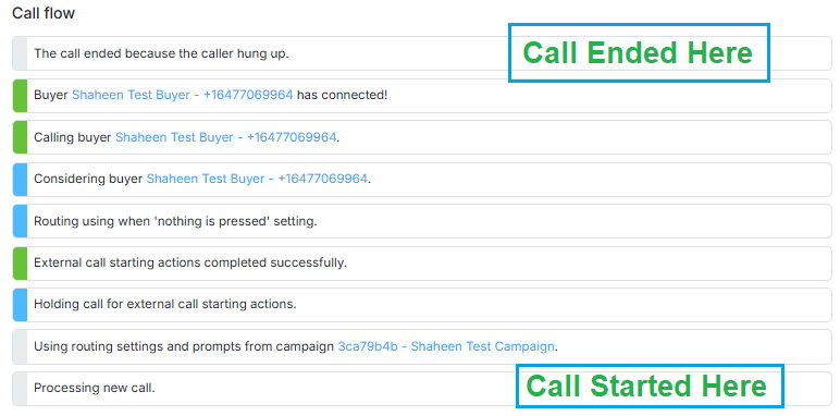 Any time we attempt to route a call to your Buyers, we list them in the order that they are being considered. We designate in the Call Flow if Buyers are closed, capped, or not matching the Tags on your call. Use can this information to troubleshoot your calls and better understand how calls are being routed in your campaign.