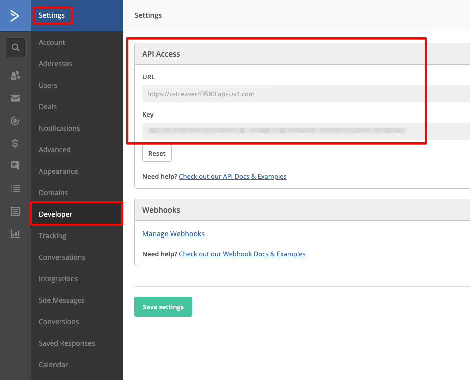- You will be asked to connect your Active Campaign Account. Log into Active Campaign and head into your settings -> developer menu to copy your credentials into Zapier.