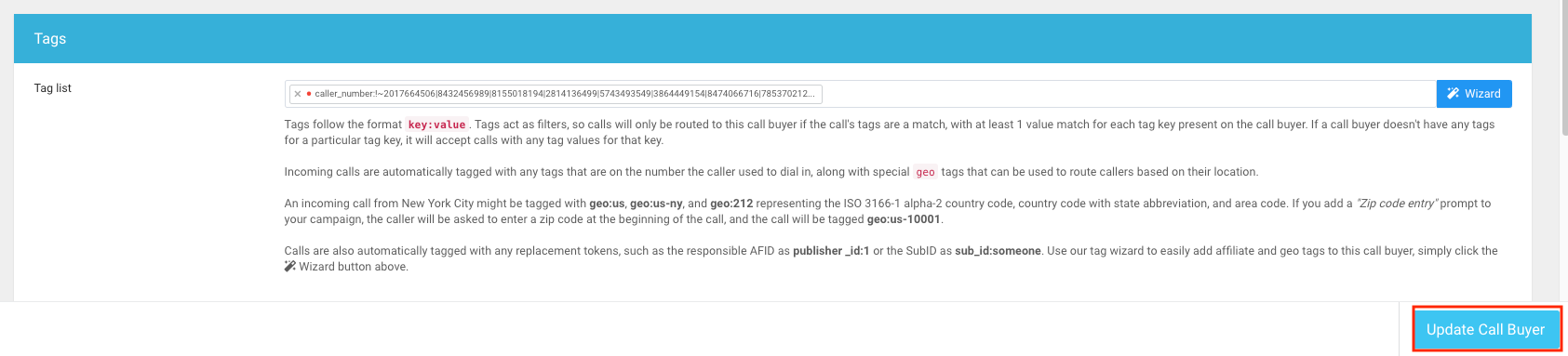 Click on "Update Call buyer" to confirm your changes and complete the buyer level suppression process.